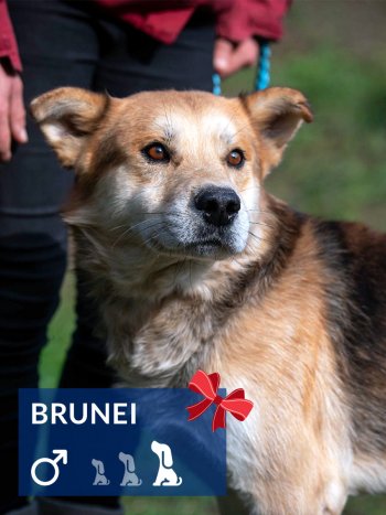 Er kommt freundlich auf einen zugelaufen, freut sich über Ansprache, Streicheleinheiten und Zuwendungen. Mit etwas Zeit kann Brundei zu einem echten Herzenshund werden.