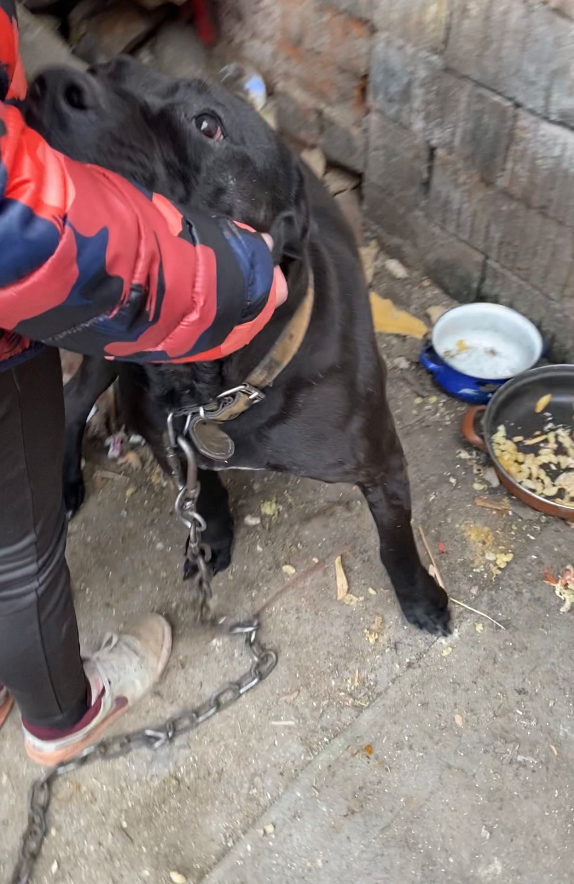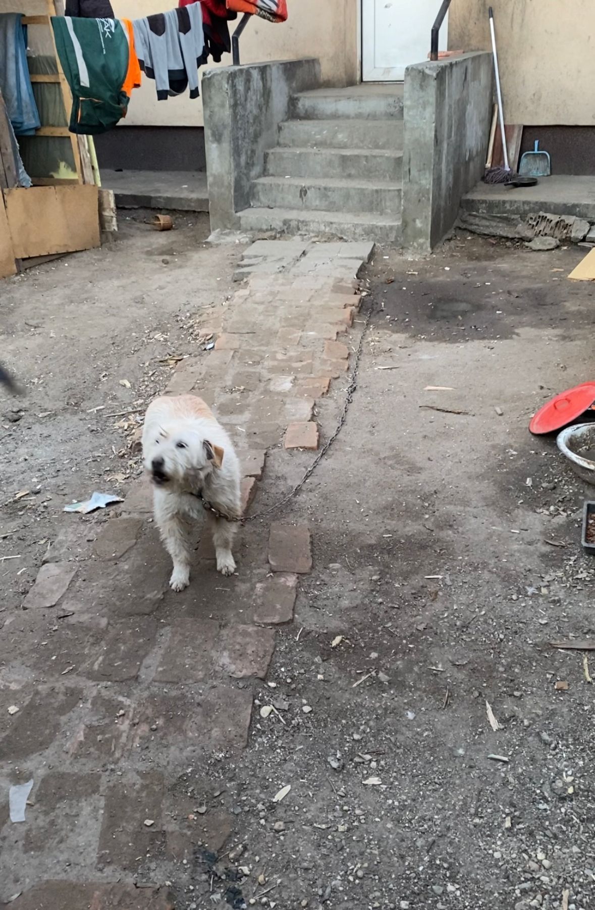 Dann döse ich und stelle mir mich in verschiedenen Jobs vor. Ich bin sehr kreativ. Weil ich wahnsinnig schlau bin! Ich brauche wirklich einen Job. Ich bin oft nervös und renne sinnlos von links nach rechts. Immerhin habe ich einen 2 Meter Radius. Aber meine Kette ist schwer. Trotzdem muss ich mich bewegen. Ich muss den Stress ablaufen. Besonders schwer fühlt sich meine Kette an wenn ich mal wieder mehrere Tage hintereinander nichts zu essen bekommen habe. Dann fresse ich meinen Kot. Besser als nichts. Ich glaube, ich sehe schon eher erbärmlich als imposant aus.