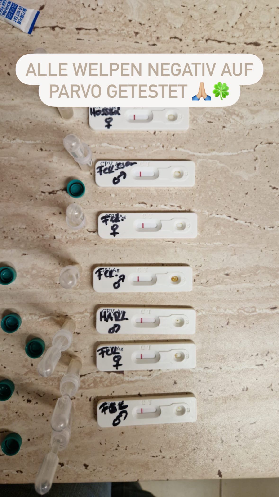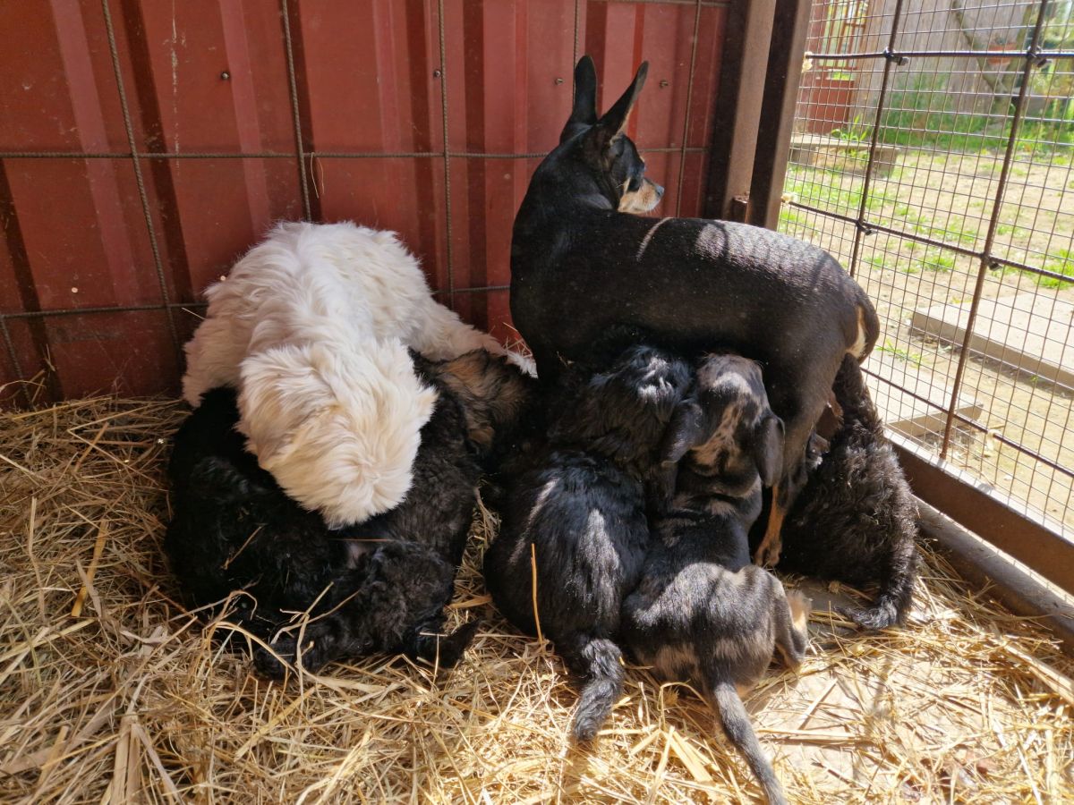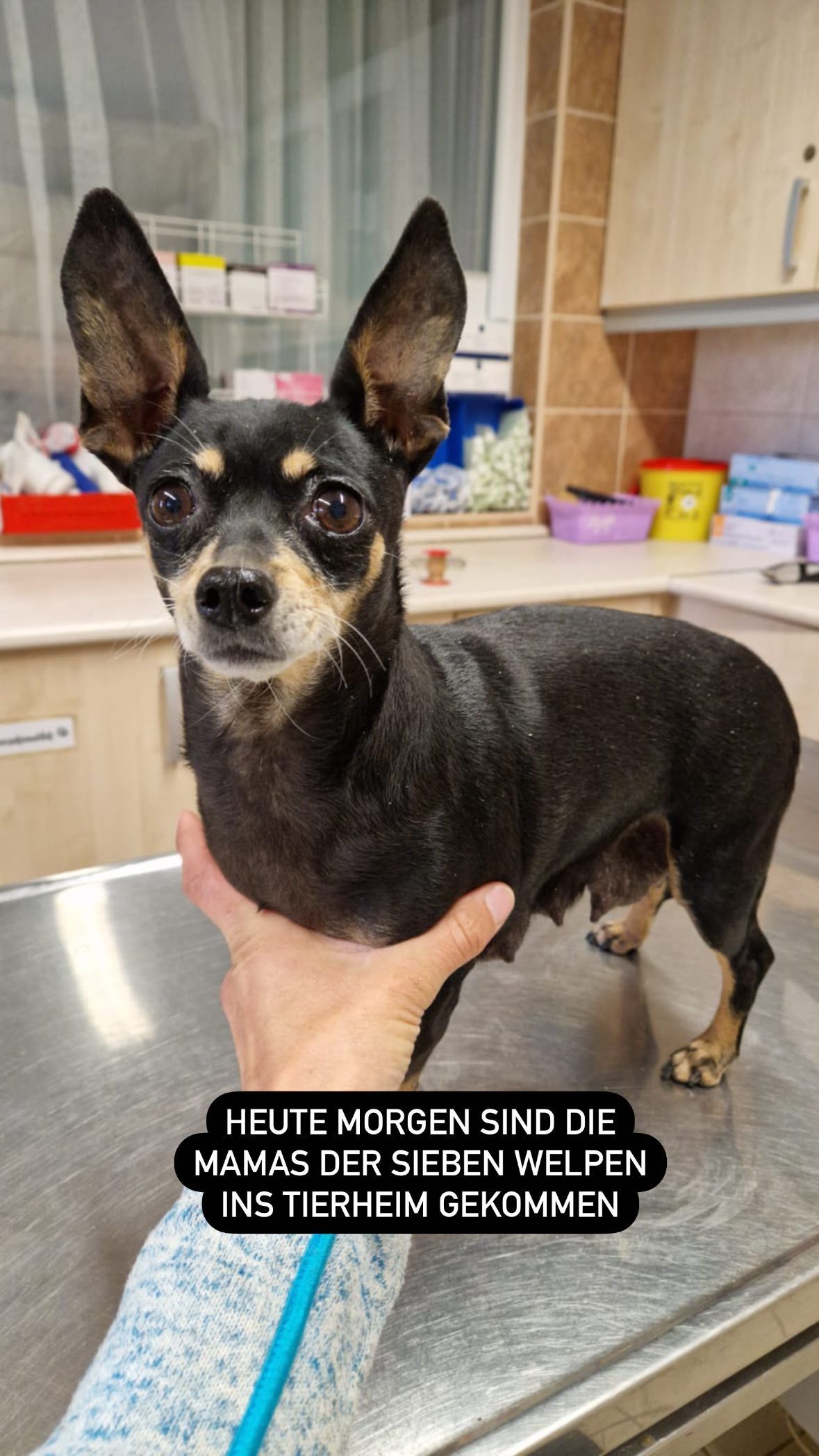 Heute wurden 7 Welpen im Tierheim abgegeben und zum Glück nicht einfach im Nirgendwo ausgesetzt. Mittlerweile sind auch die beiden Mamas gekommen und der Test auf Parvovirose war zum Glück bei allen negativ.