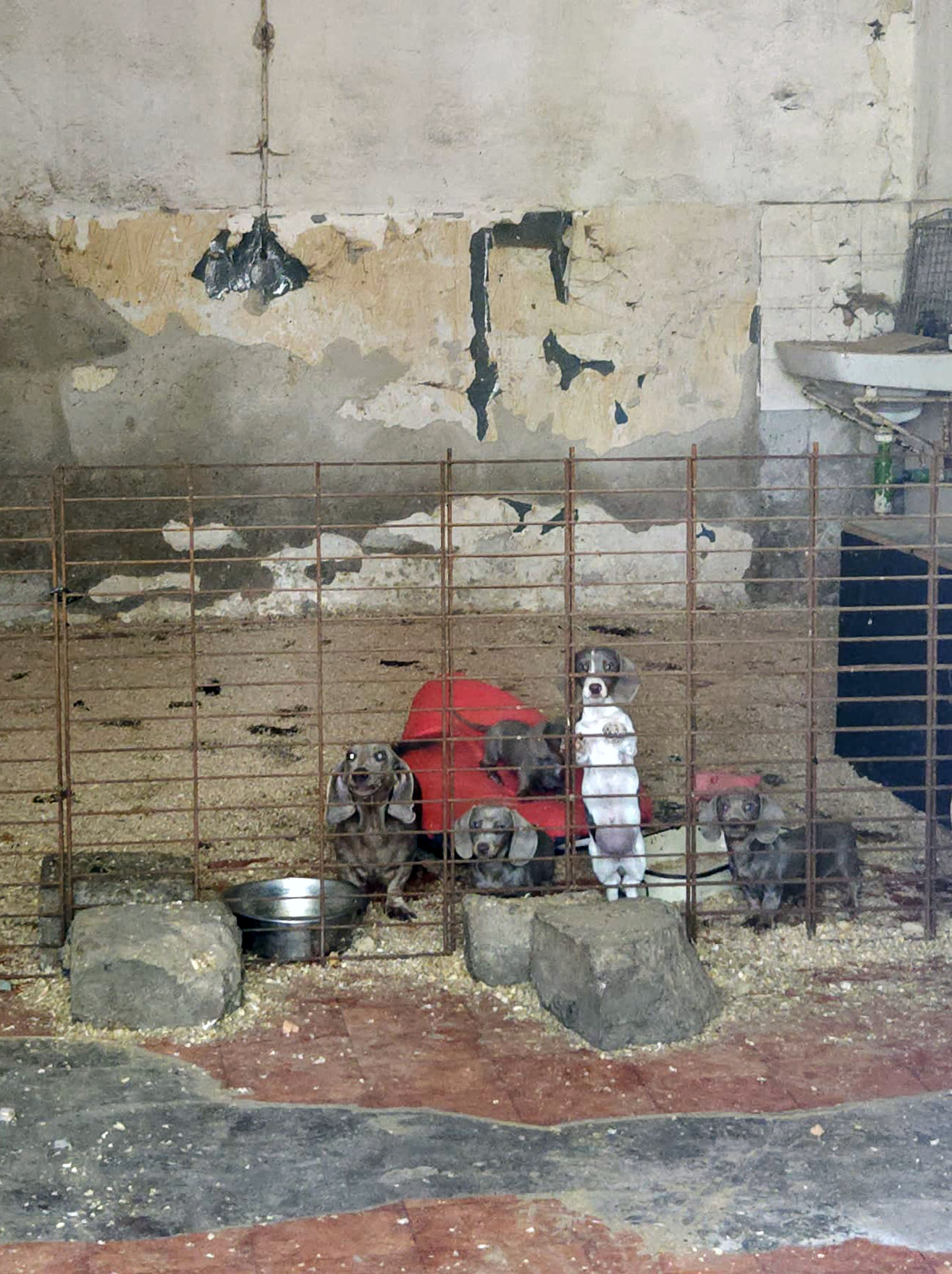 Wir gingen den Geräuschen der Hunde nach und standen plötzlich vor unzähligen alten und heruntergekommenen Baracken. Als wir hineinsahen- Welpen und erwachsene Hunde!!! in verdreckten Ställen. Hier haben wir einen verlassenen Ort gefunden, wo illegaler Welpenhandel betrieben wird...in ganz großem Stil.