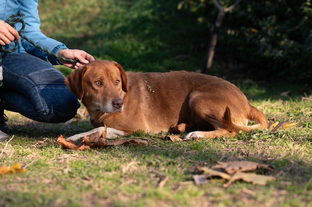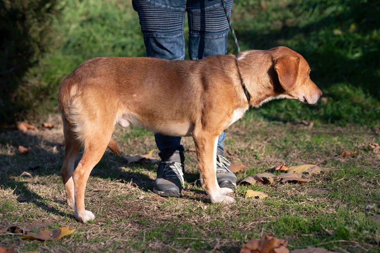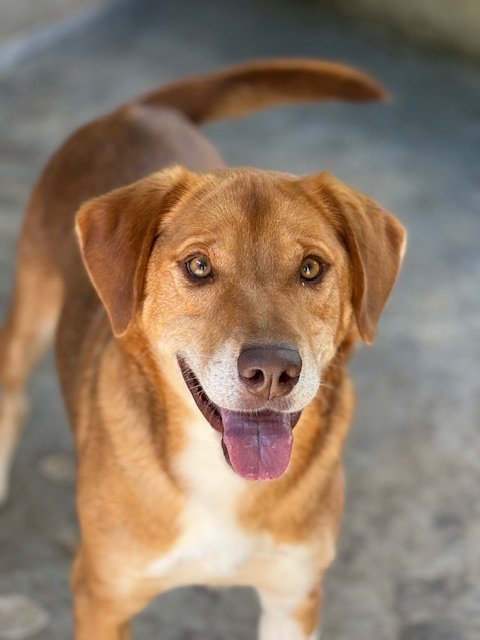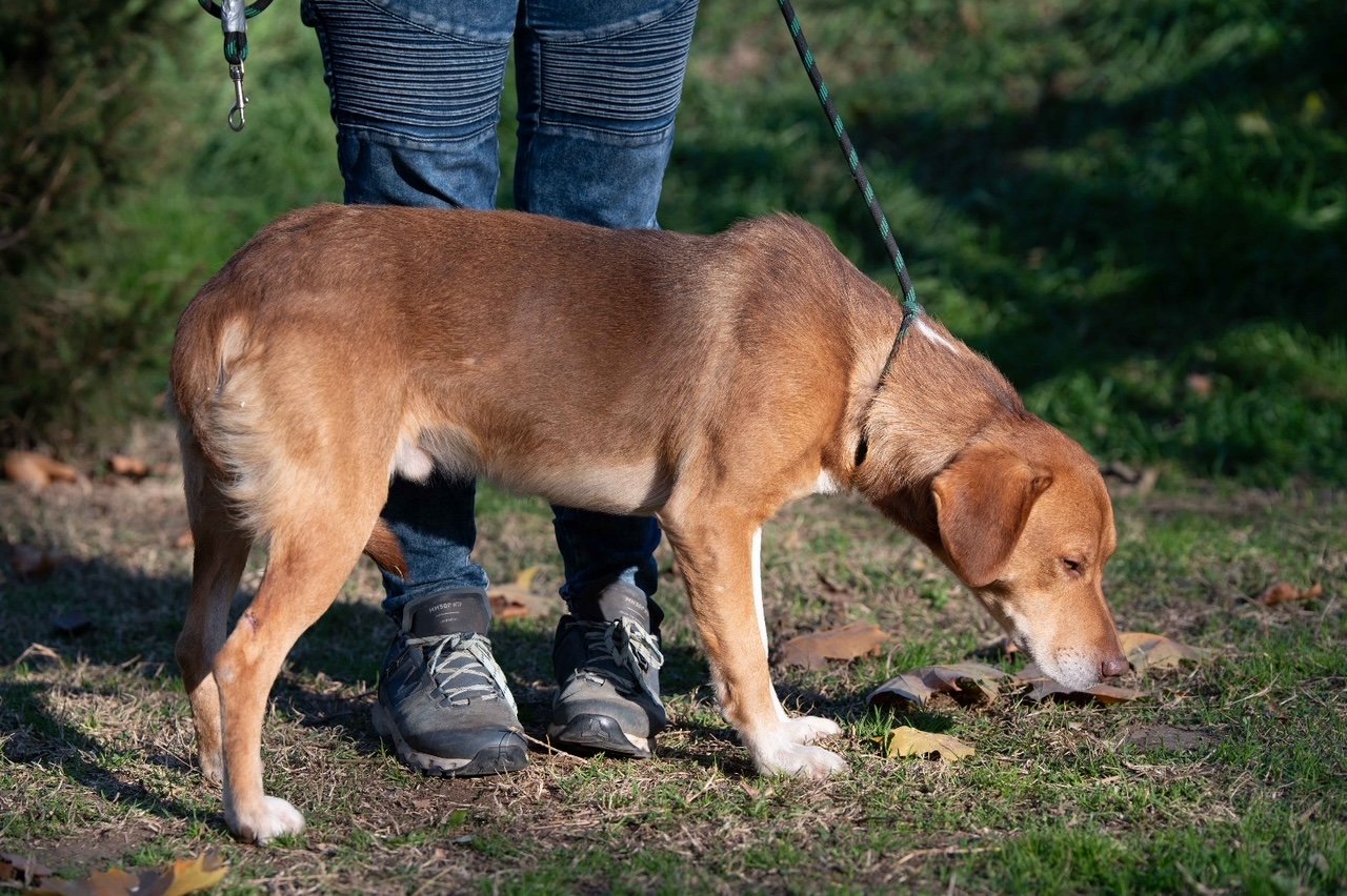 Dank seines zutraulichen Wesens konnten wir ihn problemlos sichern und mitnehmen. Neon war weder gechipt noch registriert. Den Abend zuvor hatten wir ihn schon in Begleitung von zwei weiteren Hunden am Straßenrand gesehen. Es scheint, als hätte er sich eine Weile draußen durchschlagen müssen,
