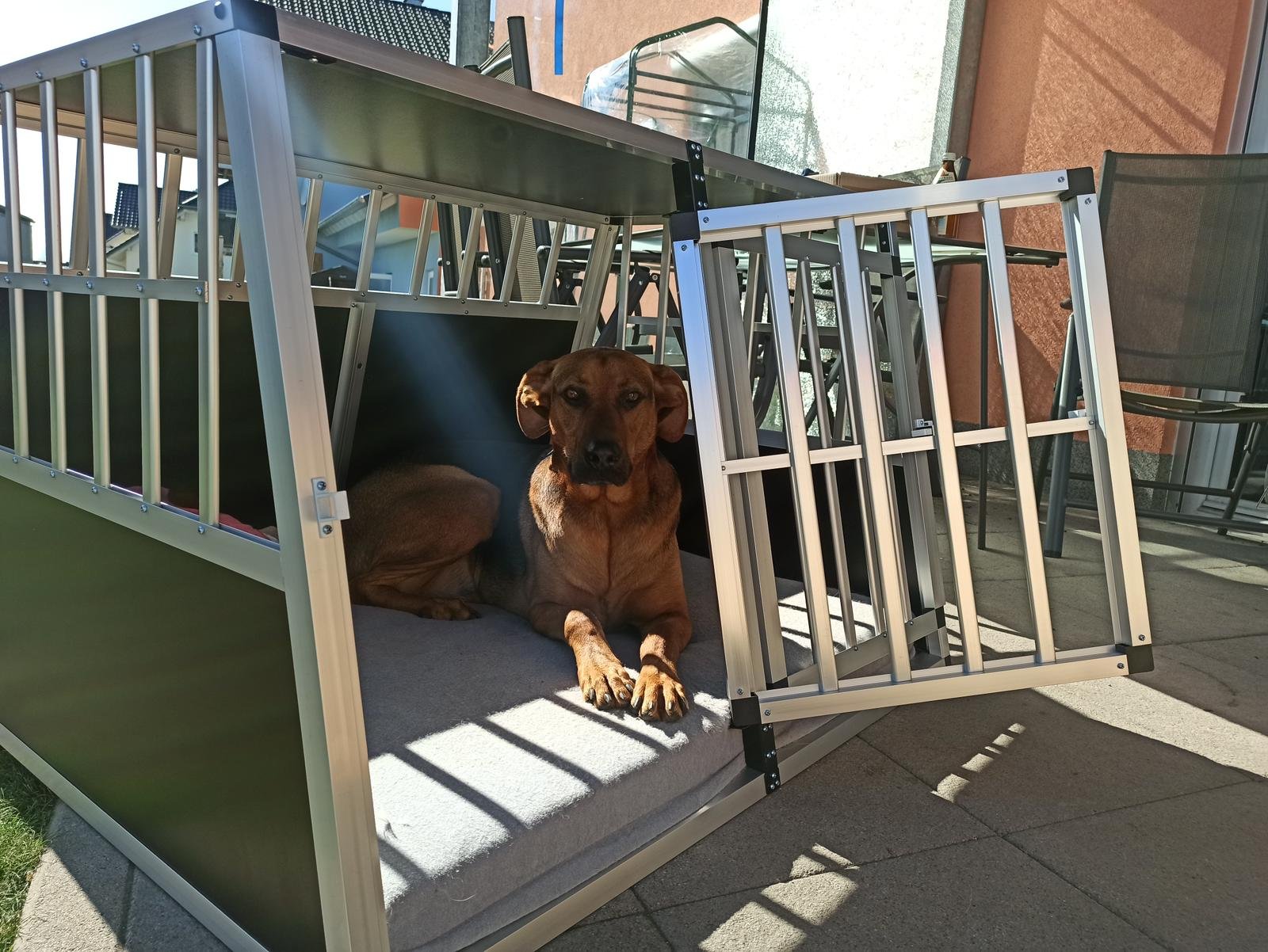 Leo kennt alleine bleiben bis maximal drei Stunden, danach wird er unruhig und öffnet Türen- also bitte an abschließen denken! Stubenrein ist er selbstverständlich.