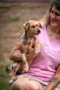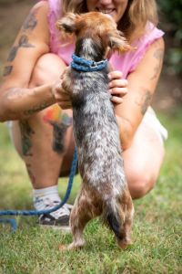 Er ist ein selbstbewusster kleiner Kerl, der weiß, was er will und was nicht. Er liebt uns Menschen und genießt Streicheleinheiten und auf den Arm genommen zu werden und fordert dies auch ein. Dabei versucht er schon mal, andere Hunde wegzudrängen und sich Platz zu verschaffen. Er spielt ab und zu mit den anderen Hunden, kommt aber auch gut alleine zurecht und liebt es, wenn man ihm den Ball wirft. Ihm sind Menschen wichtiger als andere Hunde, weshalb er gut als Einzelhund vermittelt werden kann.