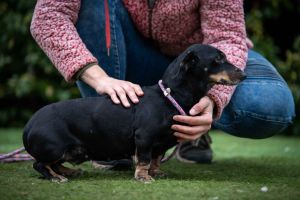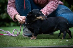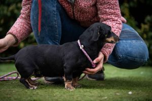 Zinaya ist eher ruhig. Kein „den ganzen Tag Action-Dackel“, sondern eher die entspannte Dackel-Light-Version. Aktuell darf sie noch ein wenig abspecken, und dann wird sie sicherlich auf mehr Freude an gemeinsamen Spaziergängen und Unternehmungen haben.