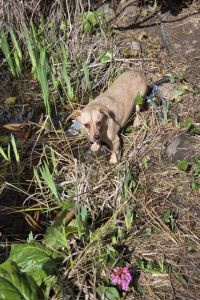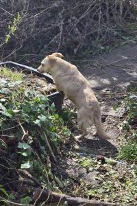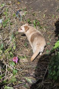 Allerdings lernt sie grade, dass das gar nicht nötig ist und macht das überraschend gut. 1,5 Jahre sind nicht in ein paar Tagen zu beheben, aber deshalb ist es umso erstaunlicher, wie schnell Lambi lernt und bereits Spaß daran hat, den Garten (inzwischen sogar schon ohne Leine) zu erkunden. Der Garten reicht für den Anfang. Sie ist auch aktuell noch zu schlecht bemuskelt, um spazieren zu gehen. Aber an der Leine läuft sie. Man muss Lambi insgesamt einen engen Rahmen bieten und die Richtung vorgeben, damit sie jemanden hat, auf den sie sich verlassen kann, denn das braucht sie so dringend. Lambi läuft wunderbar in einer größeren Gruppe mit und ist super sozial. Von fremden Menschen will sie nicht angefasst werden, da schnappt sie auch.