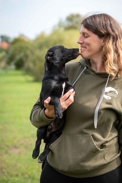 Wie es sich für Welpen gehört, sind sie lebendig, neugierig, verspielt und voller Lebensfreude. Menschen gegenüber zeigen sie sich zutraulich, verschmust und absolut liebenswert – kleine Entdecker mit einer Portion Schabernack im Gepäck. Im Tierheim begegnen sie Neuem offen und unbefangen, verstehen sich prima mit ihren Artgenossen und saugen jeden Reiz neugierig auf. Natürlich steht bei allen noch das große Hunde-1x1 auf dem Programm: Stubenreinheit, Leinenführigkeit, Grundkommandos – eben alles, was ein Hund fürs Leben so braucht. Aber mit einer liebevollen Begleitung, Geduld und klarer Führung werden sie das sicher schnell meistern.