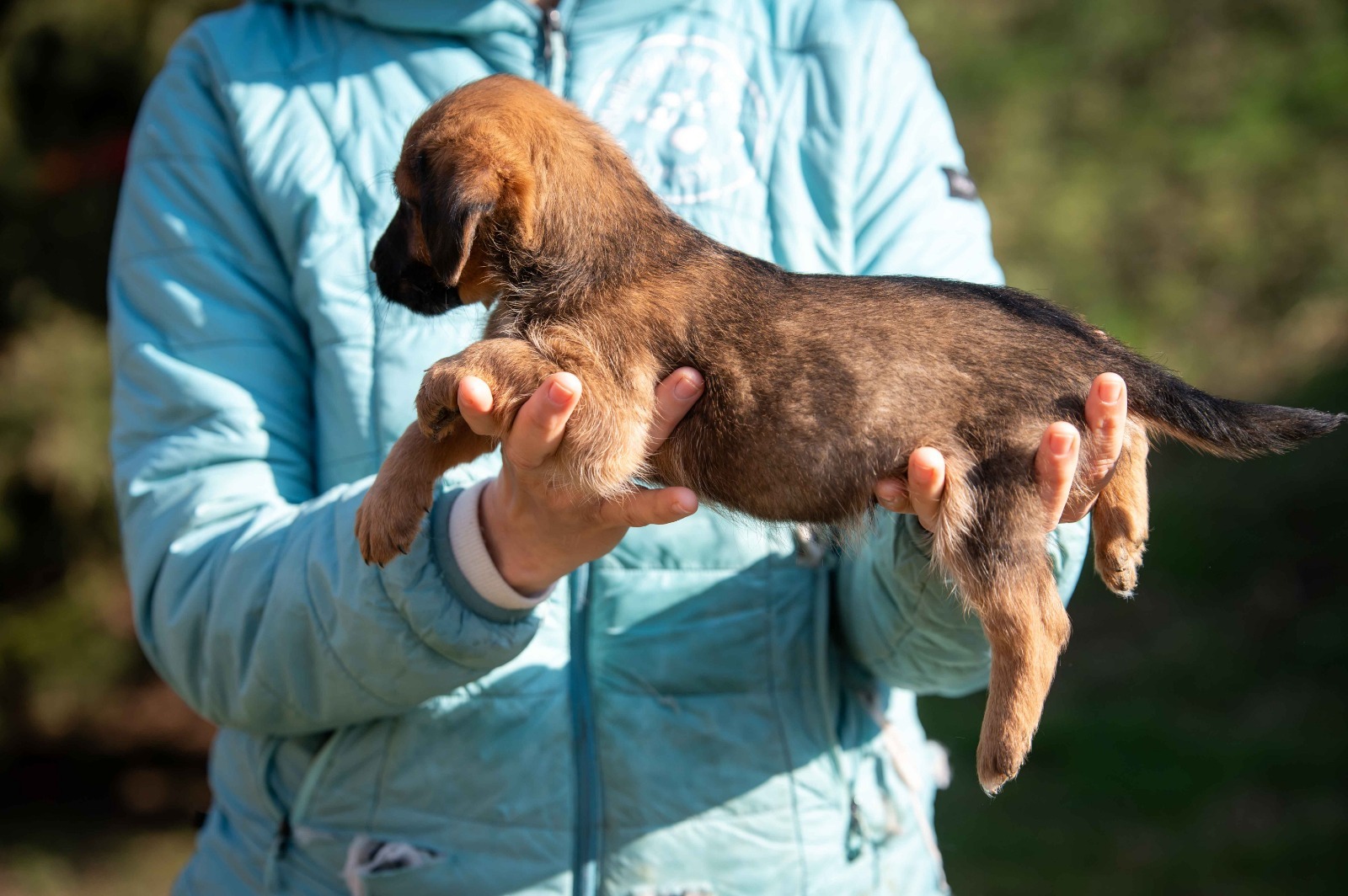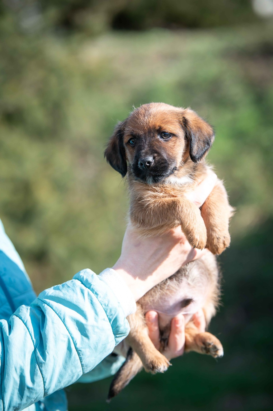 Die drei sind ganz normale Welpen: lieb, aufgeschlossen, fröhlich und voller Neugier. Sie bringen ein interessiertes Wesen mit und machen genau das, was Welpen eben so machen – schlafen, toben, spielen, fressen. Natürlich stehen sie noch ganz am Anfang und sind noch grün hinter den Ohren. Sie müssen noch alles lernen – vom kleinen Hunde-ABC bis hin zu den Regeln des Alltags. Mit anderen Hunden sind sie verträglich und sozial.