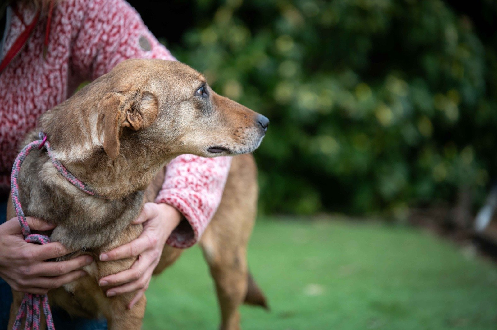 Wayla wurde bisher ein Leben als Kettenhund auferlegt, angebunden an eine viel zu kurze Kette von vielleicht einem Meter Länge, fixiert an einem Baum. Die Eisenkette war ihr einfach um den Hals gelegt worden. Dort an dem Platz harrte sie ohne gelichen Schutz und ohne Unterschlupf aus.
