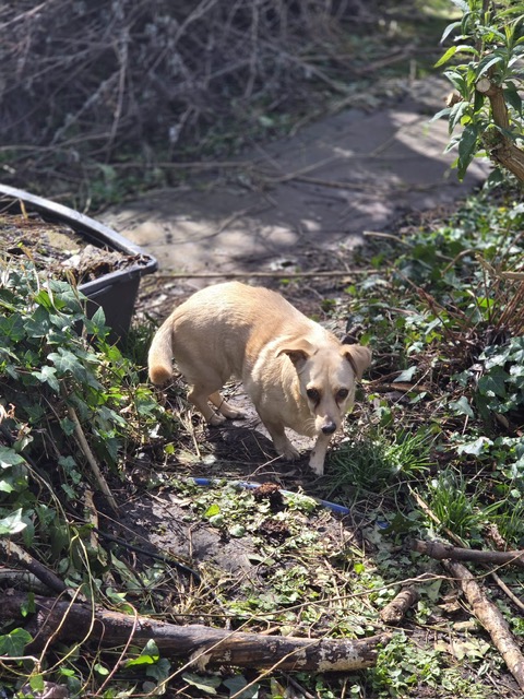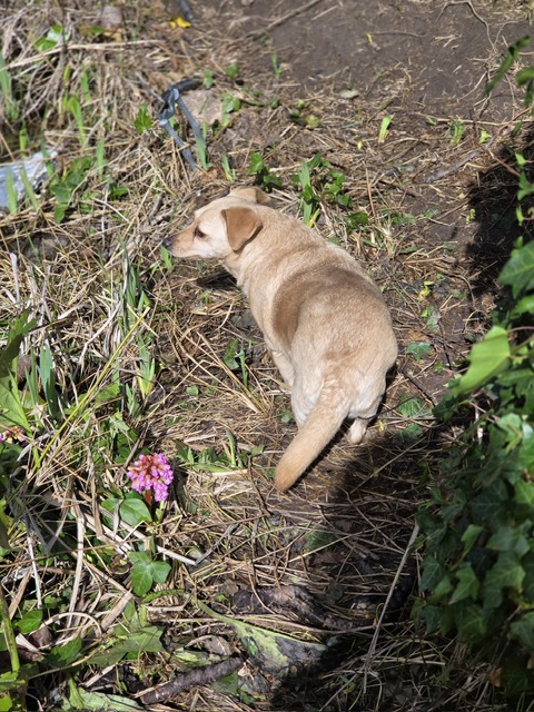Allerdings lernt sie grade, dass das gar nicht nötig ist und macht das überraschend gut. 1,5 Jahre sind nicht in ein paar Tagen zu beheben, aber deshalb ist es umso erstaunlicher, wie schnell Lambi lernt und bereits Spaß daran hat, den Garten (inzwischen sogar schon ohne Leine) zu erkunden. Der Garten reicht für den Anfang. Sie ist auch aktuell noch zu schlecht bemuskelt, um spazieren zu gehen. Aber an der Leine läuft sie. Man muss Lambi insgesamt einen engen Rahmen bieten und die Richtung vorgeben, damit sie jemanden hat, auf den sie sich verlassen kann, denn das braucht sie so dringend. Lambi läuft wunderbar in einer größeren Gruppe mit und ist super sozial. Von fremden Menschen will sie nicht angefasst werden, da schnappt sie auch.
