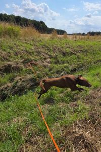 Man bekommt einen Hund, der lieb alleine bleibt, stubenrein ist, es liebt im Auto mitzufahren, super toll an der Leine läuft und bei seiner Bezugsperson inzwischen schon frei mit kurzer Schleppleine spazieren geht und immer abrufbar ist. Von seiner Bezugsperson lässt sich Lino anfassen, bürsten usw. Vorsichtig fängt er an, streicheln zu genießen.