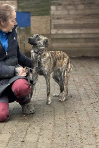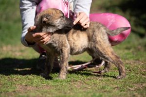 Seit ca. zwei Monaten lebt Aglaranna nun auf unserem Schutzhof in Deutschland. Sie hat in dieser Zeit bereits eine gute Bindung zu ihrer Bezugsperson aufgebaut und orientiert sich an ihr. Fremden gegenüber ist sie jedoch weiterhin zunächst ängstlich und zurückhaltend gegenüber. Besonders Männern begegnet sie mit großer Vorsicht. Hier braucht es viel Geduld, Ruhe und Verständnis.