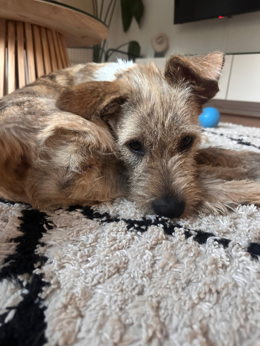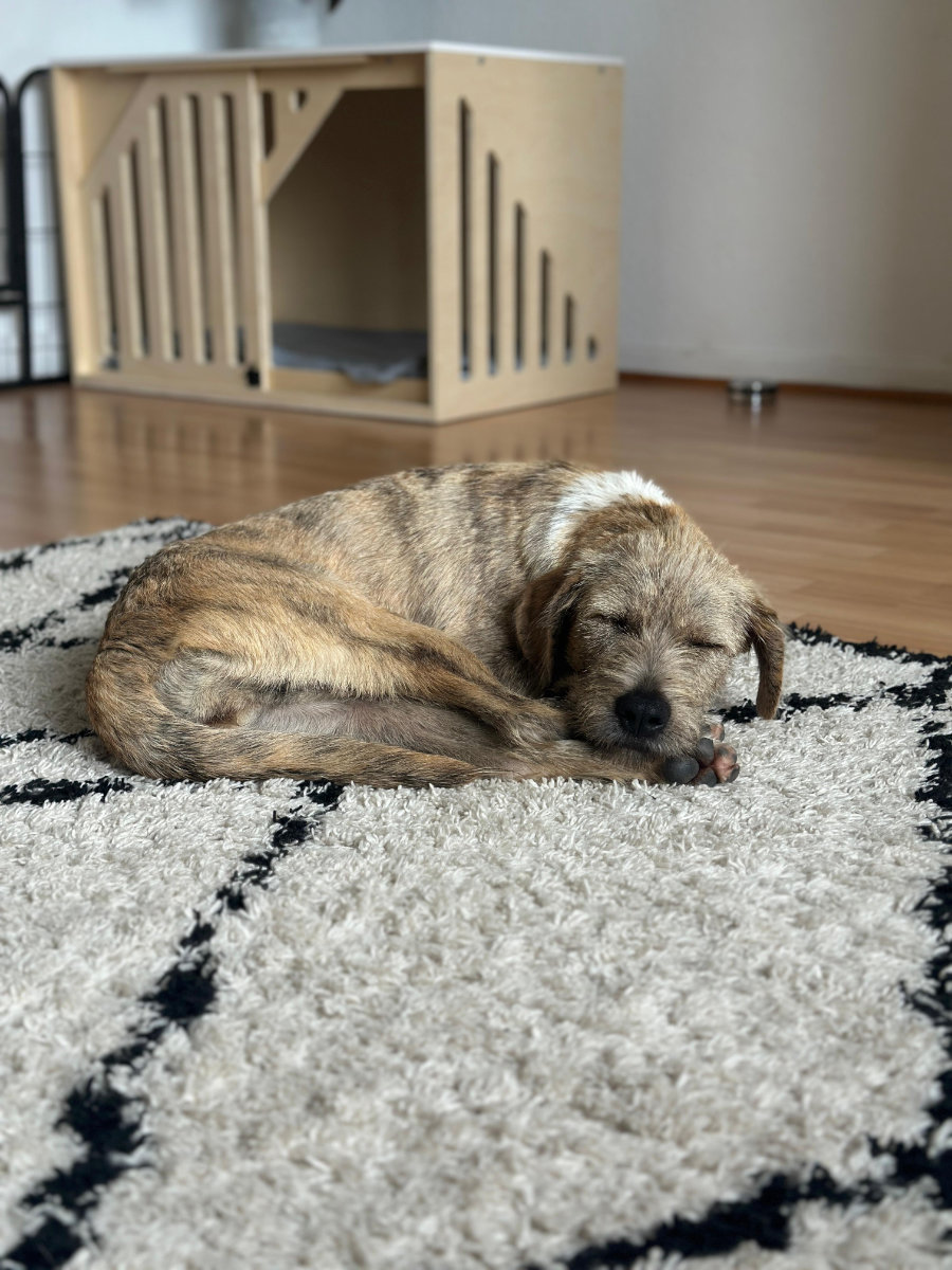 • Sie liebt ihr Hundebett von Kudde und nimmt nach einiger Zeit auch eine Box ganz gut an.