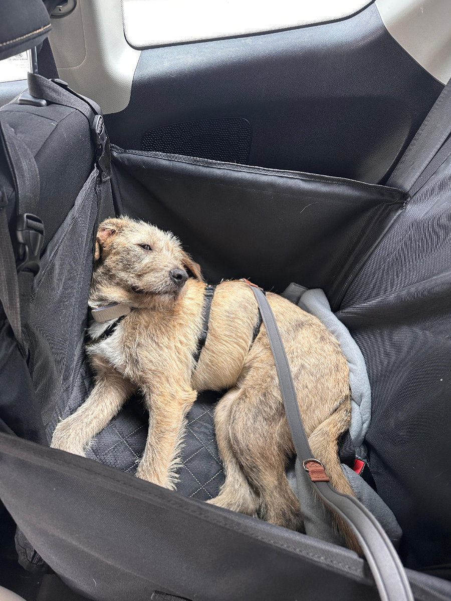 • Autofahren macht sie super mit. Anfangs ist noch alles sehr interessant. Sie beobachtet alles und jeden aus dem Auto. Aber auch da lassen sich schnell Fortschritte sehen und sie legt sich mal ab beim Fahren.