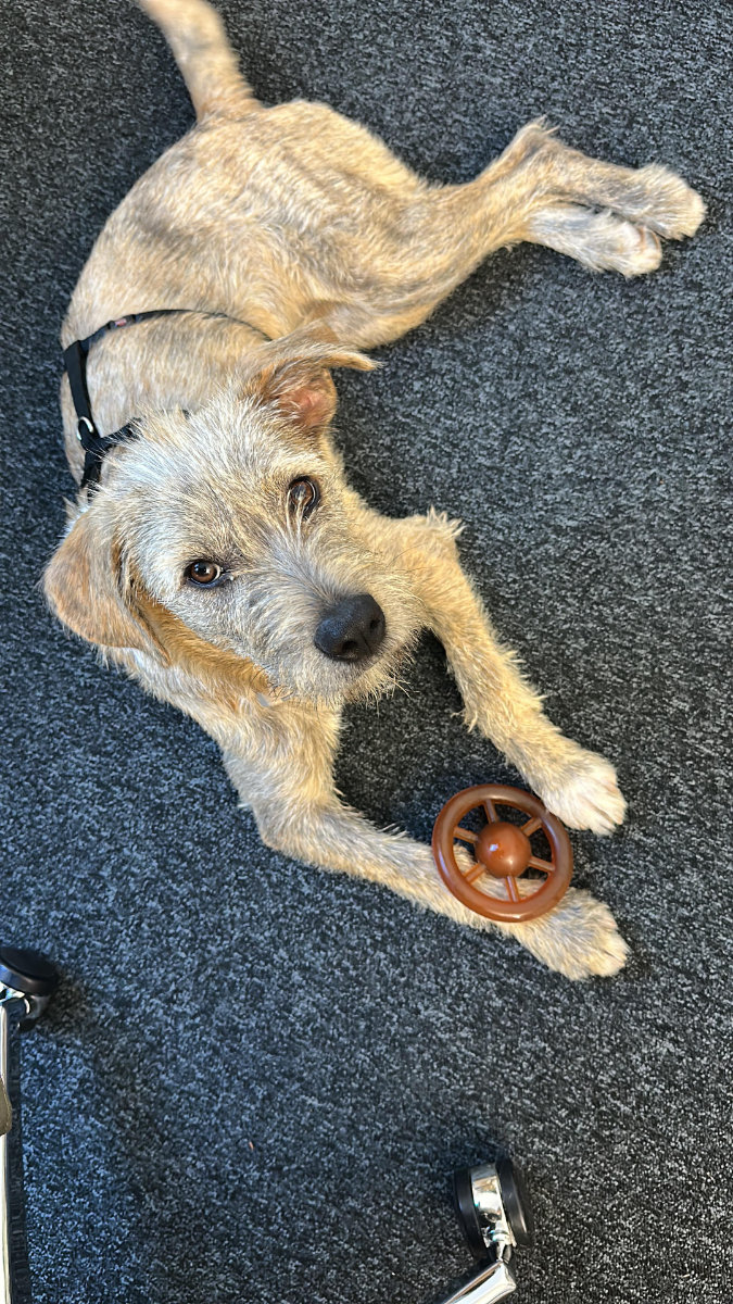 • Sie war zwei Tage mit im Büro und mit guter Eingewöhnung kann sie super mit ins Büro kommen. Sie hat sich direkt in ihrer Box abgelegt und geschlafen und sich nicht an den anderen Leuten im Büro gestört.
