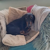 Mit anderen Hunden versteht Kiefer sich super – er läuft in der gemischten Gruppe völlig problemlos mit. Menschen gegenüber ist er freundlich und liebevoll, einfach ein netter kleiner Dackelmann, der noch ein bisschen Selbstvertrauen tanken muss. An seiner Stubenreinheit arbeitet er fleißig und an der Leine läuft er schon ganz gut, auch wenn es natürlich noch Luft nach oben gibt.