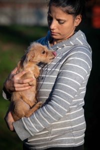 Rivka ist noch super ängstlich und sie schnappt auch wenn man sie beim Erstkontakt zu sehr bedrängt. Aber mit Ruhe und Geduld kann man sie überzeugen. Natürlich muss sie noch einiges lernen – Alltagsroutinen, das Hunde-ABC und all die Dinge, die ein junger Hund fürs weitere Leben wissen muss. Mit anderen Hunden ist sie verträglich und zeigt sich sozial im Umgang.