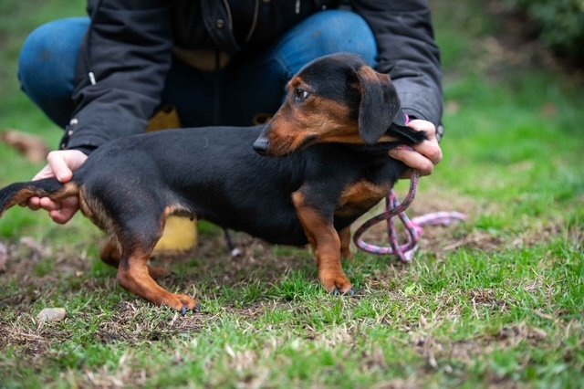 Anfangs zeigt sich Iliana ein wenig schüchtern, doch sie fasst schnell Vertrauen. Sie lässt sich problemlos hochheben, ist lieb, freundlich, zutraulich und insgesamt ein sehr sympathisches kleines Dackelmädchen, das einfach nur ankommen möchte.