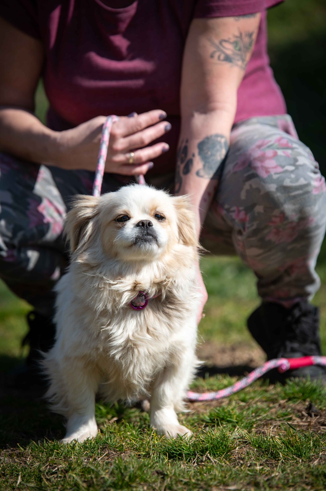 Primrose bringt eher ein angenehmes Temperament mit. Sie zeigt sich gelassen und entspannt und lässt sich nicht so schnell aus der Ruhe bringen. Peregrin hingegen ist ein typischer Junghund. Aktiv, bewegungsfreudig, manchmal noch etwas tollpatschig und immer mitten im Geschehen. Ein kleiner Wirbelwind mit viel Energie und Lust auf Abenteuer. Natürlich müssen beide noch einiges lernen – vom Hunde-ABC bis zu den kleinen Regeln des Alltags. Mit anderen Hunden sind sie verträglich und sozial.
