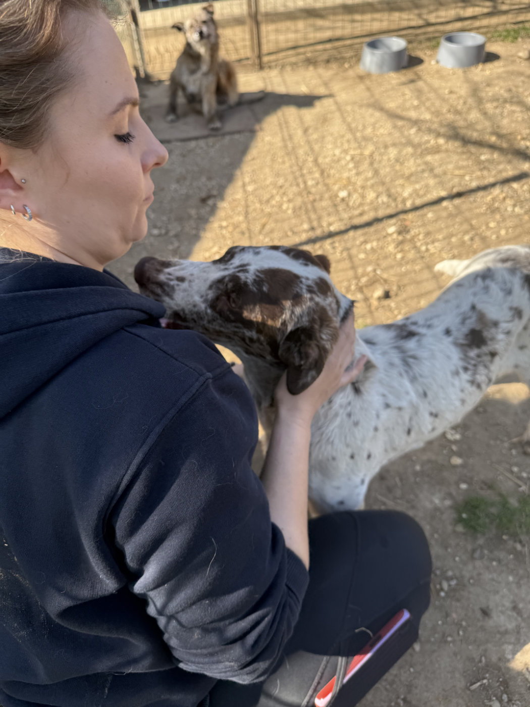 Sade konnten wir aus einer Gitterbox befreien, in der sie gemeinsam mit Rüde Spooks ganze zwei Wochen eingesperrt war. Als wir die beiden aus der Gitterbox herausholten, waren sie einfach nur lieb und vor allem: unglaublich froh, endlich da raus zu sein. Heute wartet Sade in unserem Partnertierheim Allatbarat in Ungarn auf ihren Neustart.