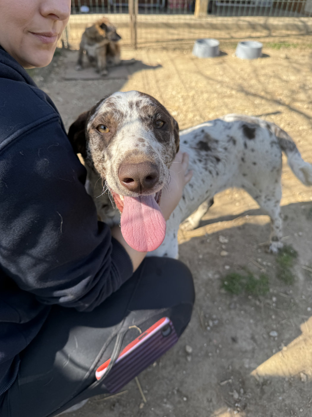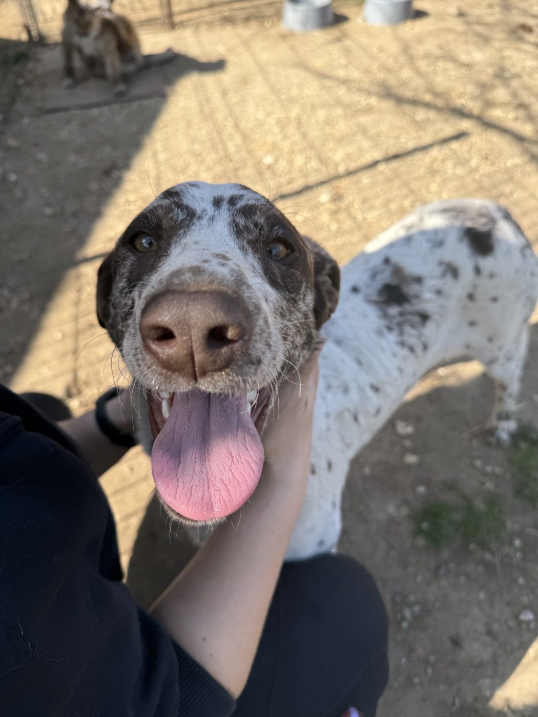 Sade ist eine freundliche, zugängliche und aufgeschlossene Hündin. Sie zeigt sich bewegungsfreudig und aktiv – kein Wunder, nach dieser Vorgeschichte hat sie erstmal ordentlich Nachholbedarf. Endlich rennen, sich bewegen, die Welt entdecken – genau das steht jetzt auf ihrer Wunschliste ganz oben. Sie ist zudem menschenbezogen, liebt Zuwendung und hat keinerlei Berührungsängste. Sade muss noch einiges lernen, die Basics, die alltäglichen Routinen im neuen Zuhause, ebenso auch zur Ruhe zu kommen – das gehört zum neuen Leben genauso dazu wie Abenteuer und Action. Sade ist eine verträgliche Hündin die mit ihren Artgenossen gut auskommt und sich verträglich zeigt.