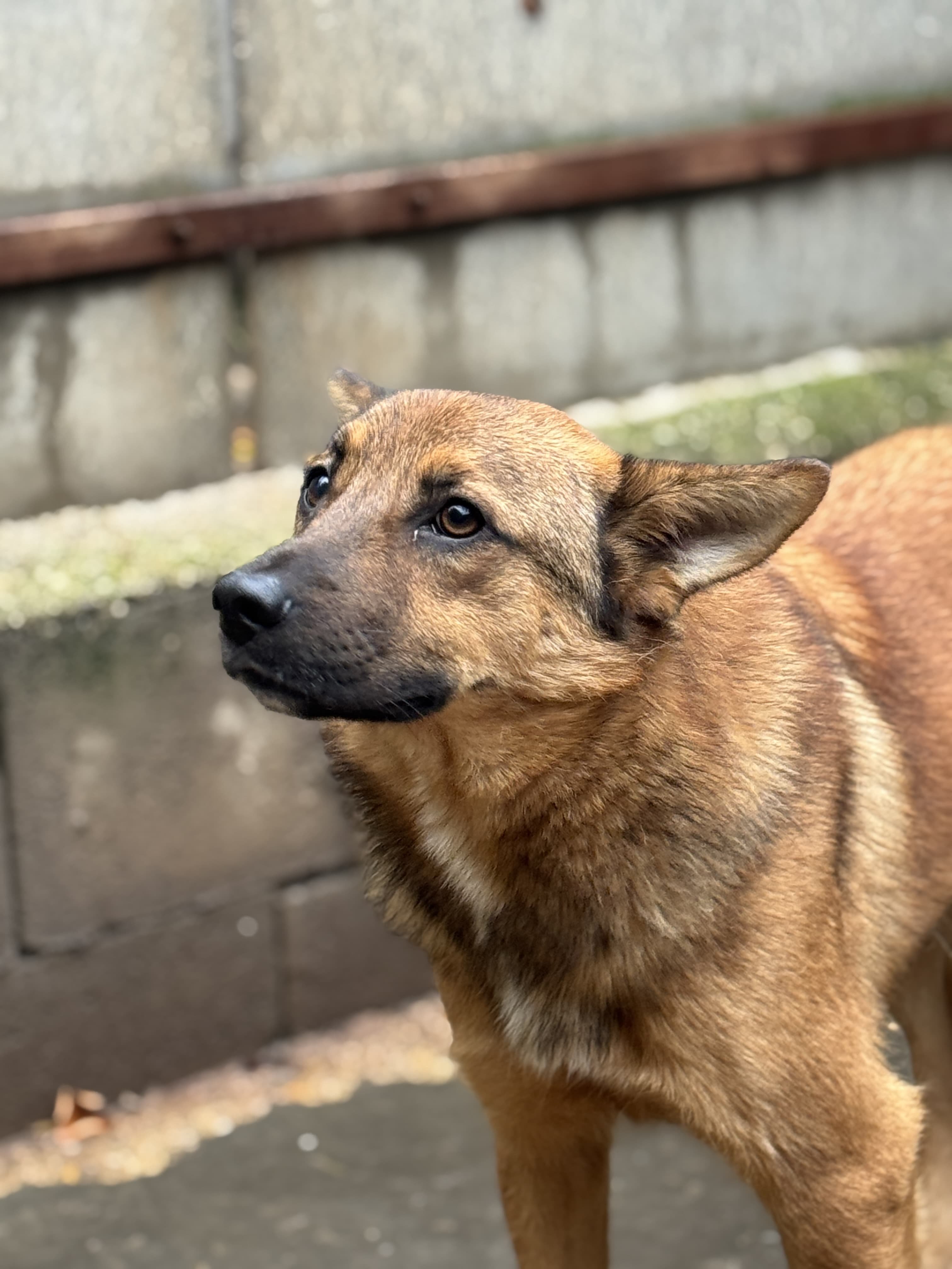 Draven haben wir von einem kleinen Tierheim übernommen, wo seine Chancen auf einen Neuanfang sehr schlecht waren. Heute wartet er in unserem Partnertierheim Allatbarat in Ungarn.