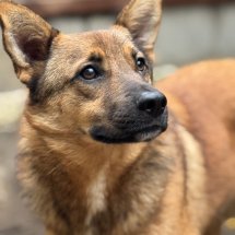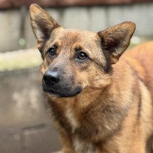 Draven haben wir von einem kleinen Tierheim übernommen, wo seine Chancen auf einen Neuanfang sehr schlecht waren. Heute wartet er in unserem Partnertierheim Allatbarat in Ungarn.