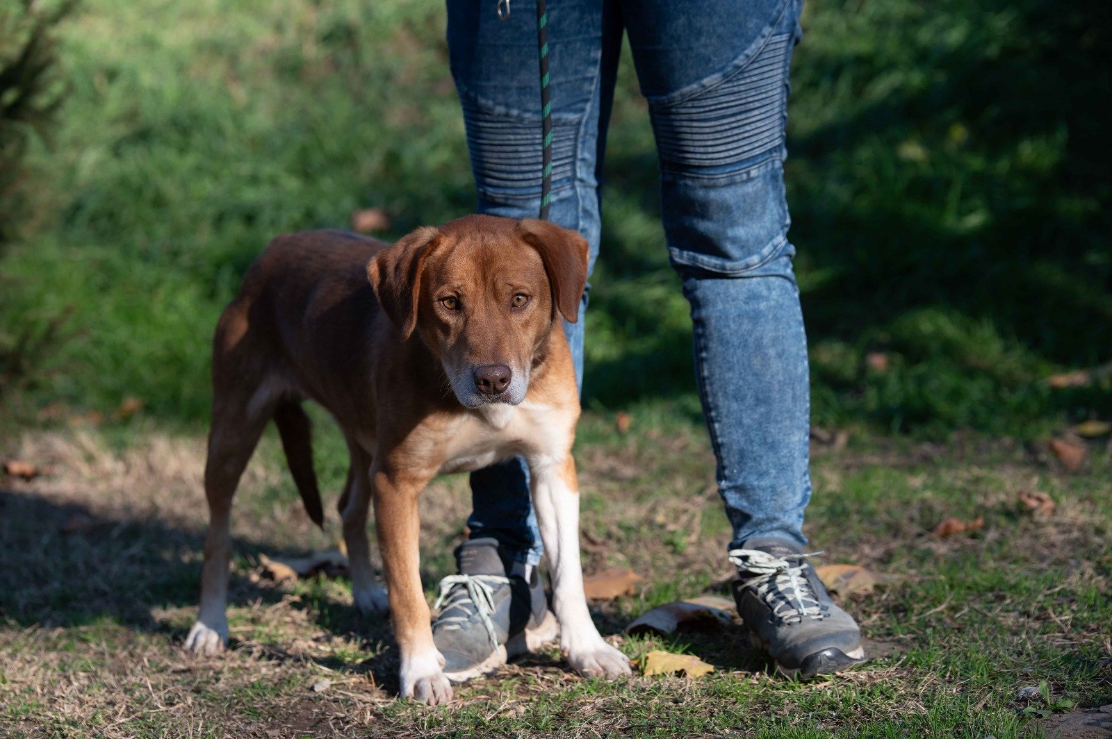 Dank seines zutraulichen Wesens konnten wir ihn problemlos sichern und mitnehmen. Neon war weder gechipt noch registriert. Den Abend zuvor hatten wir ihn schon in Begleitung von zwei weiteren Hunden am Straßenrand gesehen. Es scheint, als hätte er sich eine Weile draußen durchschlagen müssen,