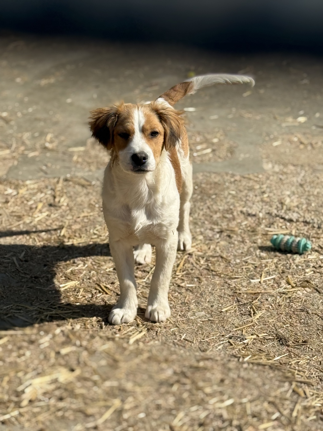 Sajttorta konnten wir von einer anderen Organisation übernehmen, wo seine Vermittlungschancen leider deutlich schlechter gewesen wären. Heute wartet er in unserem Partnertierheim in Ungarn – und bringt dort ordentlich Schwung in den Alltag.