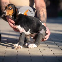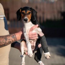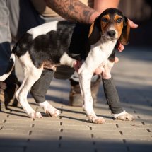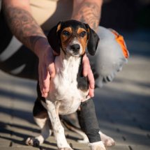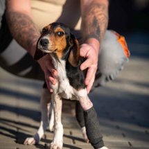 Der Besitzer von Boci hatte den jungen Rüden angefahren, dabei brach er sich gleich zwei Beine. Da der Mann die Tierarztkosten nicht übernehmen konnte, wurde unser Partnertierheim in Ungarn um Hilfe gebeten. Zum Glück konnten wir Boci auf unserer Welpen-Pflegestelle in Ungarn unterbringen, wo er liebevoll versorgt wird. Seine Behandlungen laufen gut, die Brüche heilen und Boci darf sich nun schon langsam nach einem neuen eigenen Zuhause umsehen.