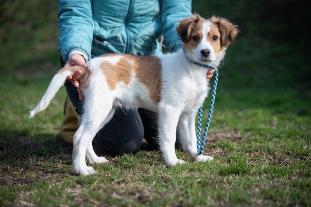 Sajttorta konnten wir von einer anderen Organisation übernehmen, wo seine Vermittlungschancen leider deutlich schlechter gewesen wären. Heute wartet er in unserem Partnertierheim in Ungarn – und bringt dort ordentlich Schwung in den Alltag.
