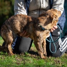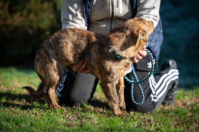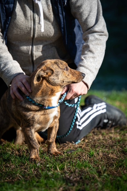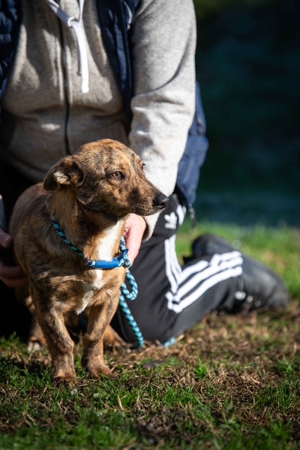 Tazio ist ein lieber und freundlicher Hund mit einer anfänglichen Unsicherheit im Umgang. Er braucht einen kurzen Moment, um Vertrauen zu fassen – doch bringt man ein bisschen Geduld mit, taut er schnell auf. Vorsichtig kommt er dann heran, schnuppert an der Hand und lässt sich dann anfassen und streicheln. In einem liebevollen Zuhause wird Tazio weiter aufblühen und sich zu einem fröhlichen, kleinen Abenteurer entwickeln, der gern Neues entdeckt und natürlich auch noch einiges lernen möchte. Mit seinen Artgenossen ist er verträglich und zeigt sich insgesamt als sozialer und umgänglicher Hund.