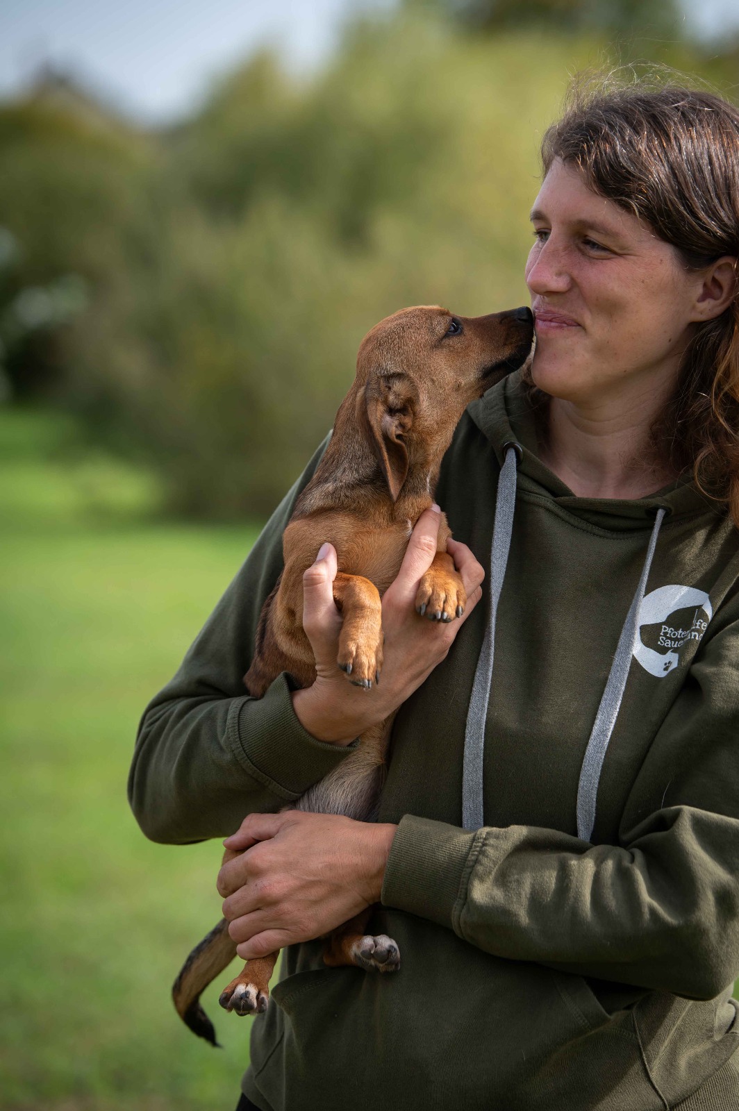 Wie es sich für Welpen gehört, sind sie lebendig, neugierig, verspielt und voller Lebensfreude. Menschen gegenüber zeigen sie sich zutraulich, verschmust und absolut liebenswert – kleine Entdecker mit einer Portion Schabernack im Gepäck. Im Tierheim begegnen sie Neuem offen und unbefangen, verstehen sich prima mit ihren Artgenossen und saugen jeden Reiz neugierig auf. Natürlich steht bei allen noch das große Hunde-1x1 auf dem Programm: Stubenreinheit, Leinenführigkeit, Grundkommandos – eben alles, was ein Hund fürs Leben so braucht. Aber mit einer liebevollen Begleitung, Geduld und klarer Führung werden sie das sicher schnell meistern.